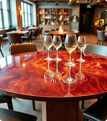 Horseshoe Table Co. specializes in custom epoxy table tops and commercial furniture built to your specifications. Every piece is handcrafted for durability, consistency, and visual impact.